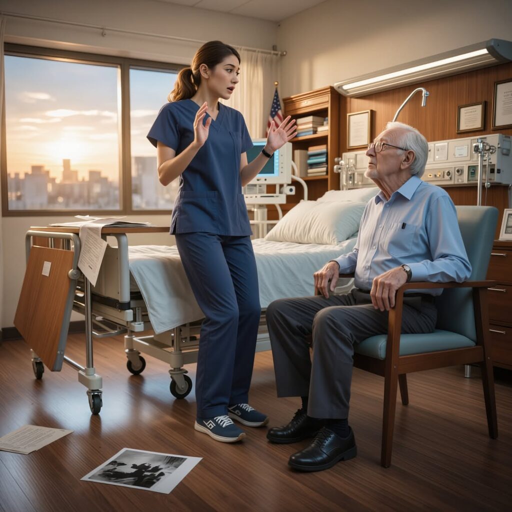 The third-floor hallway was dim and still when she checked her assignments. Victor Harrington’s name sat near the top of the list. She reviewed the notes outside his room.